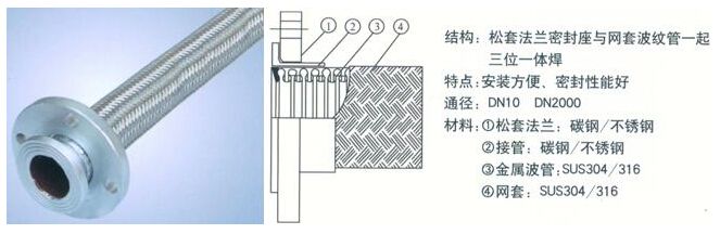 松套法蘭密封座與網(wǎng)套波紋管一起三位一體焊